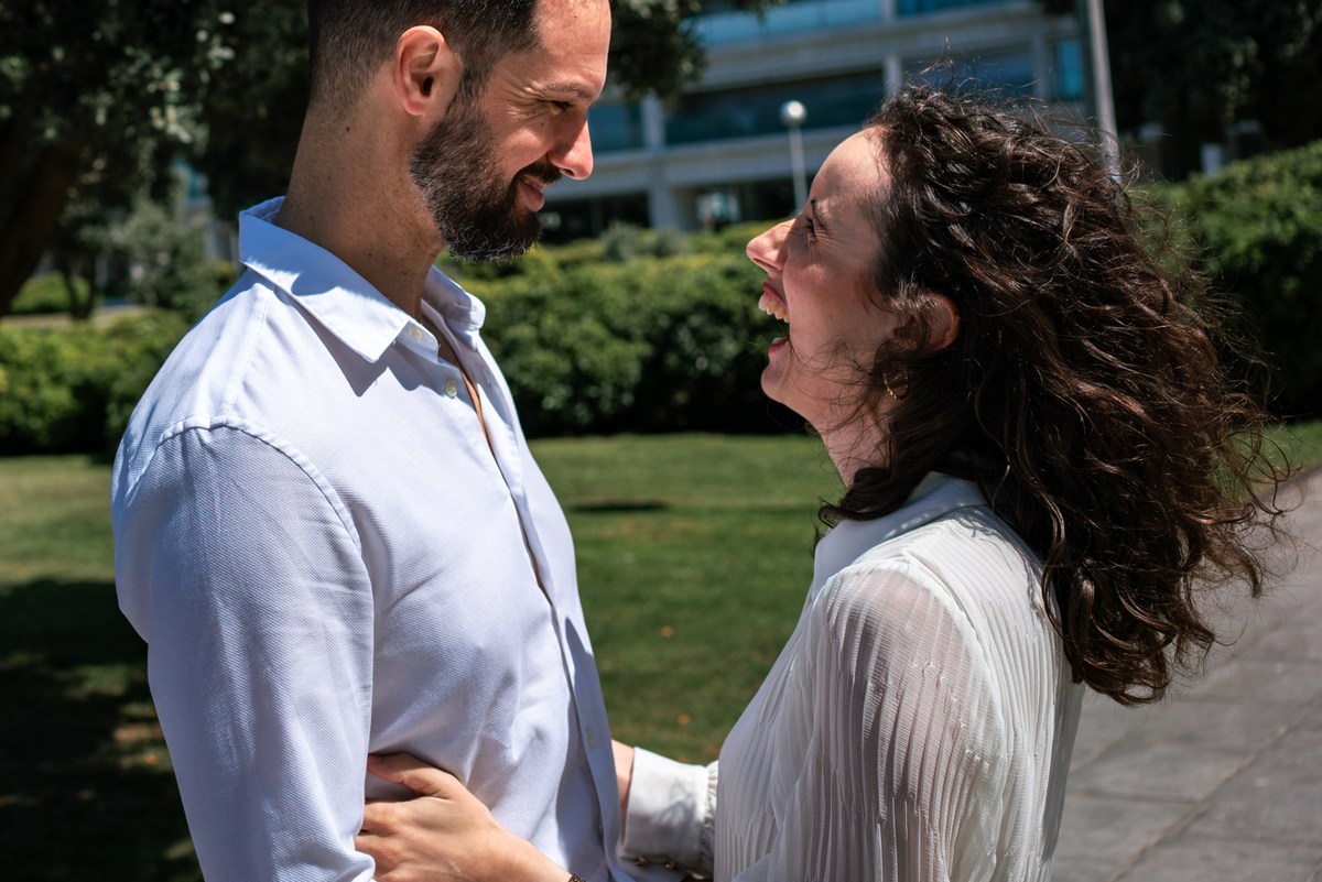 Risos espontâneos, olhares cúmplices, mãos que se encontram de forma natural.