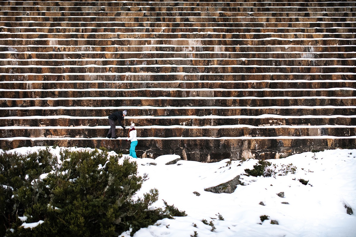Neste ambiente invulgar, com um pano de fundo meramente branco, fotografámos durante duas ou três horas. O resultado é fascinante! Além disso, tivemos oportunidade de descobrir recantos inexplorados, provar os magnificos sabores da região e sentir o frio do Inverno na pele. Naturais destas regiões de elevada altitude, estes noivos viveram este dia com uma indiferença brutal em relação às condições meteorológicas (mas sempre com o nervosismo saudável de quem é fotografado pela primeira vez). Já nós, eu e a minha assistente, após várias quedas na neve pela falta de hábito em caminhar em solos do tipo, lá aguentámos uma tarde que facilmente nos remeteu para os episódios da "Sobrevivência" no Discovery Chanel.