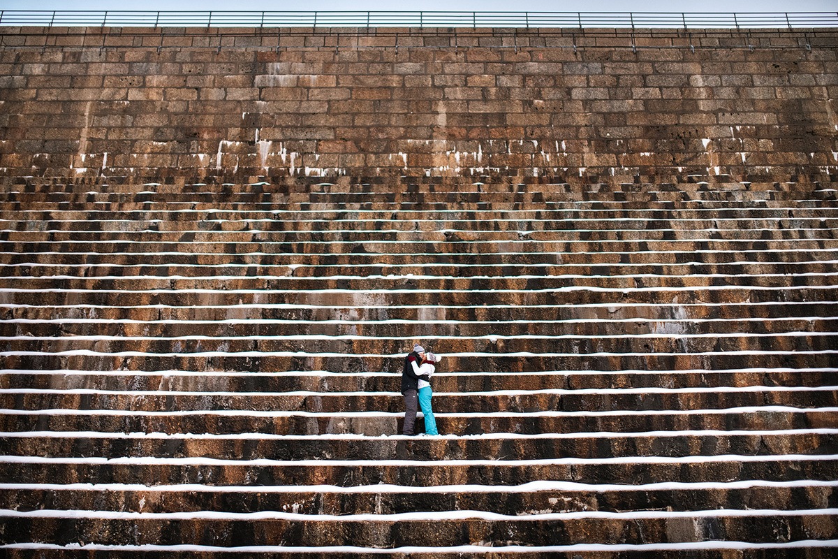 Sendo na sessão de solteiros ou pré-casamento, a primeira vez que a relação fotógrafo-fotografado aparece, é óptimo podermos aproveitar para quebrar o gelo (neste caso com duplo sentido). Temos que ser nós, fotógrafos, a desenvolver a melhor forma de passar uma mensagem de tranquilidade e confiança para os nossos noivos. O que pretendemos, bem como o caminho por onde a tendência nos leva, é uma fotografia descontraída, sem grande pose. A chamada "foto do momento", a foto documental.